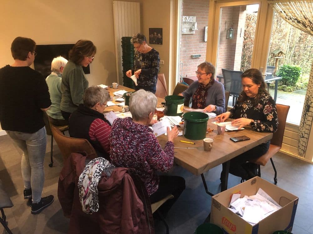 Afgelopen dinsdag- en donderdagavond hebben de coördinatoren hun emmertjes met retourenveloppen kunnen inleveren, waarna het openmaken, controleren, tellen en verwerken van de formulieren kon starten. Dit jaar is de populariteit van online betalen via de QR-code opnieuw gestegen. Ondanks alle incidentele giften via Giro 555 rondom de oorlog in Oekraïne lijken de inwoners van Heeswijk-Dinther de opbrengst voor de 16 goede doelen enthousiast te ondersteunen.