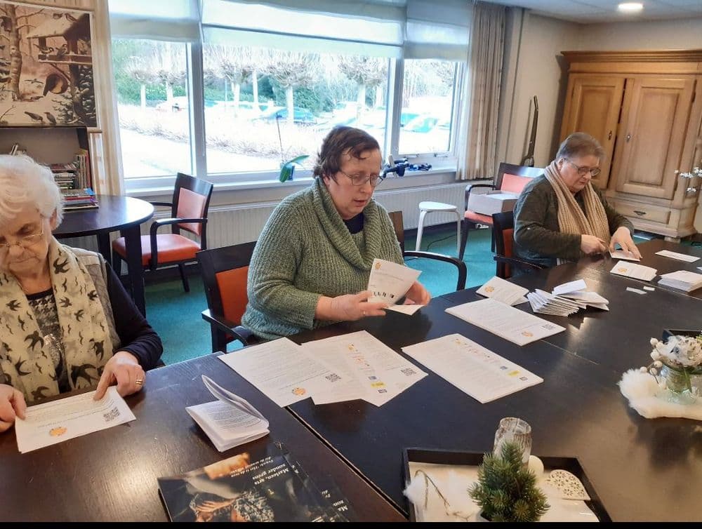Al enige weken wordt er heel hard gewerkt met groot plezier, om de brieven voor de Goede Doelenweek 2023 te vouwen en in de enveloppen te steken. Lieve mensen van de dagbesteding van Laverhof en de dagbesteding van Uniek in Schijndel, jullie zijn kanjers! Heel hartelijk dank voor jullie grote inzet!